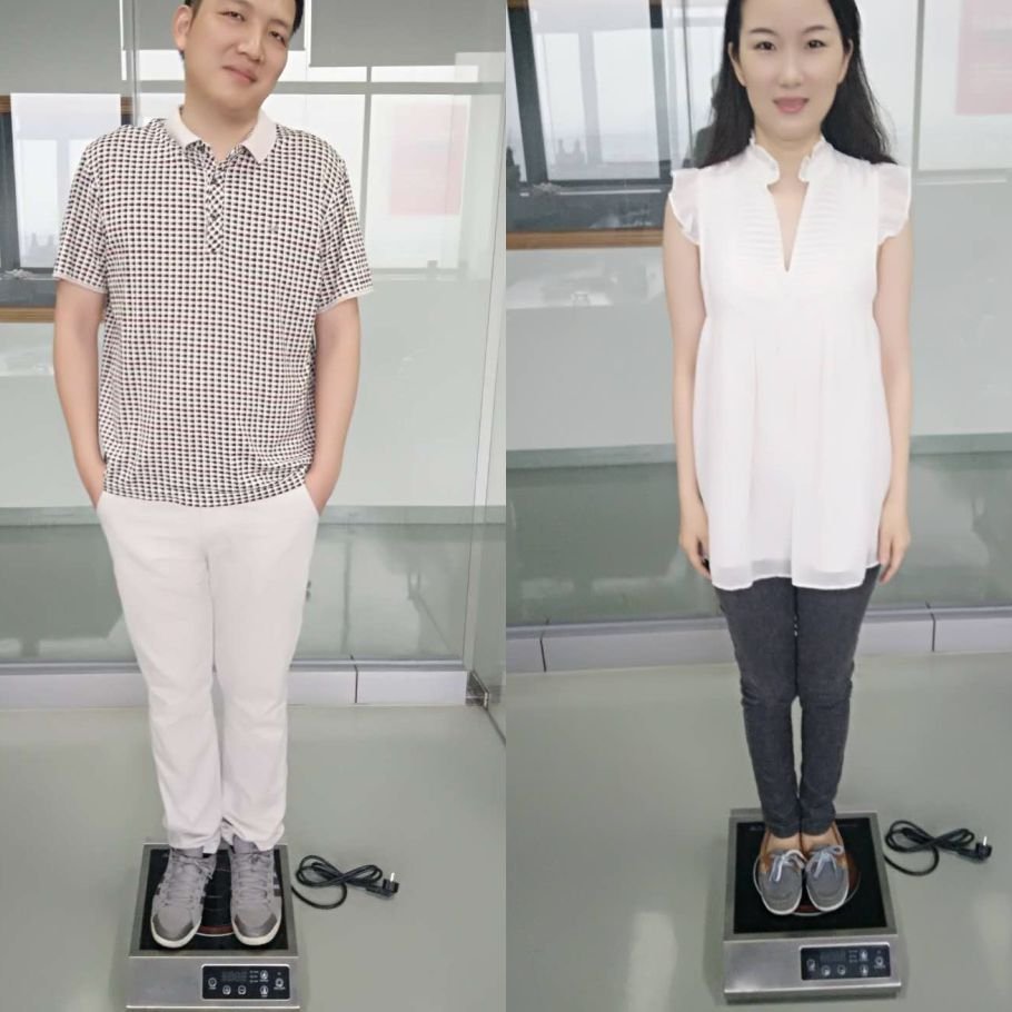 (Watch your left, an adult man weight 80kgs and an adult woman weight 55kgs stand on the induction cooker!)